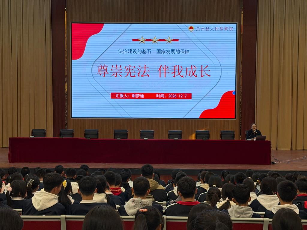 近日,瓜州县第一中学的礼堂里笑声阵阵,掌声不断,瓜州县人民检察院的检察官带着满满的“法治干货”,走进校园,和同学们展开了一场别开生面的“宪法面对面”活动!