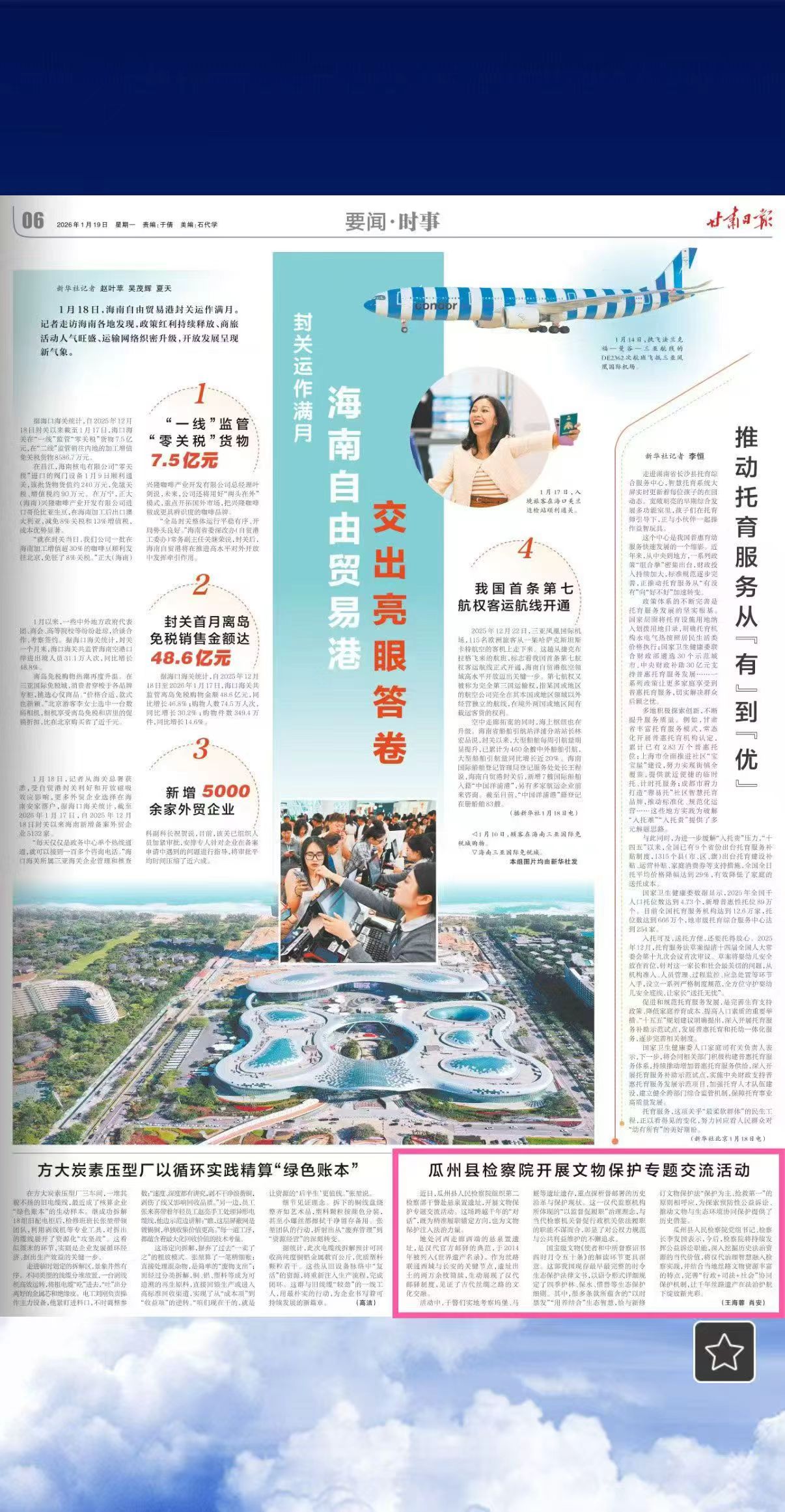 2026年1月19日,甘肃日报第六版刊发《瓜州县检察院开展文物保护专题交流活动》